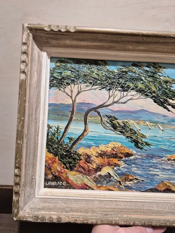 Tableau Ancien Huile Sur Carton Bord de Mer Pierre Langlade